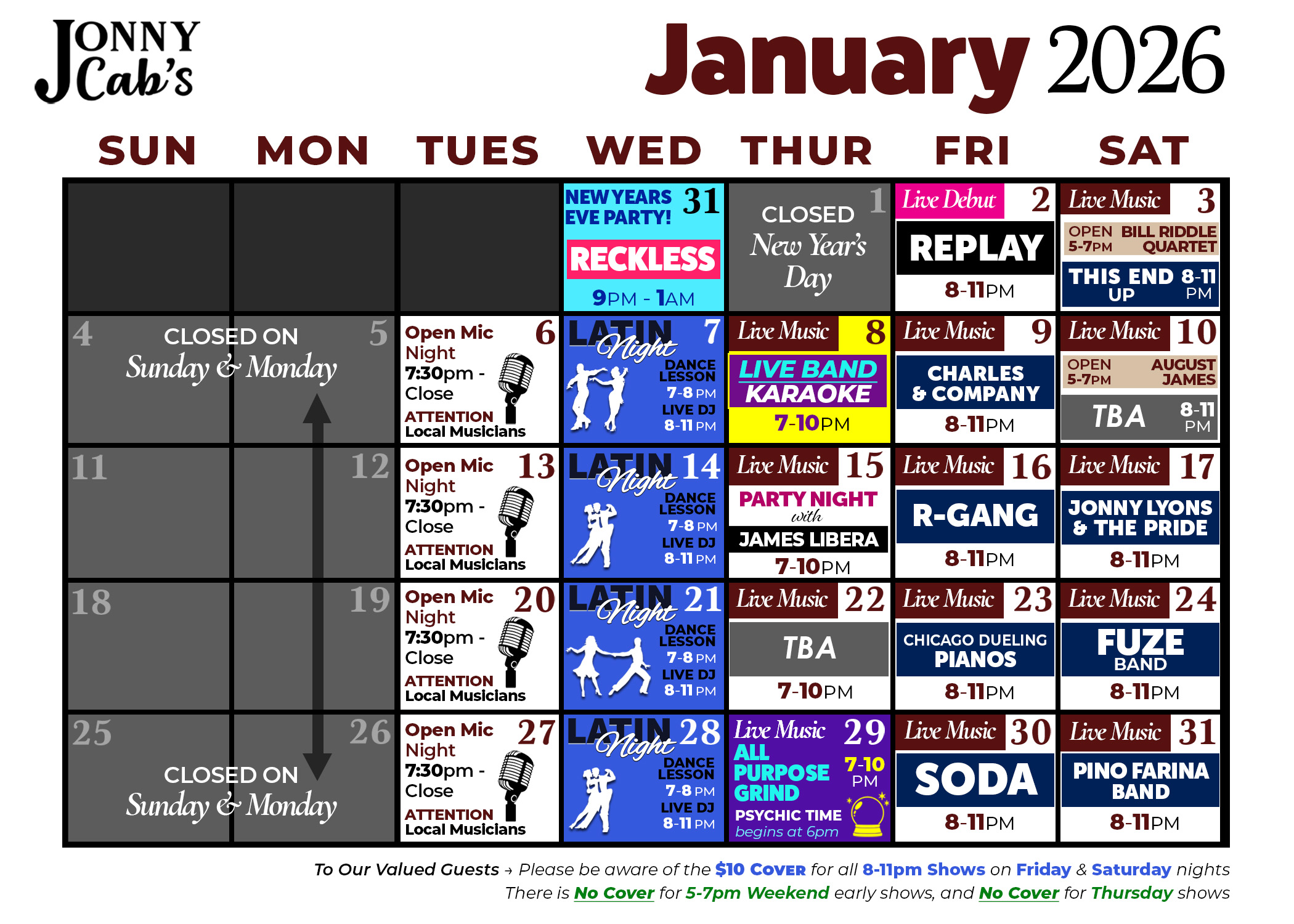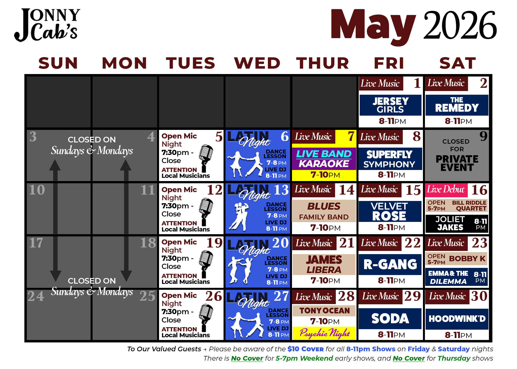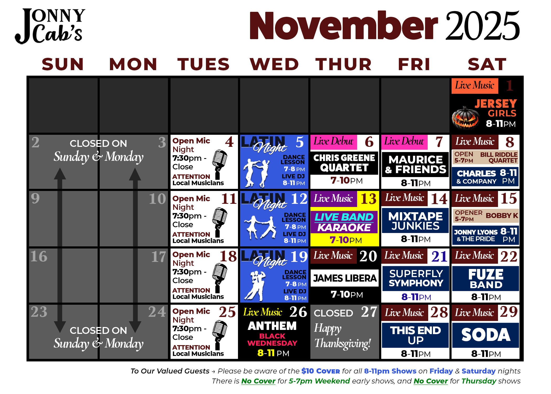 Jonny Cab's Event Schedule