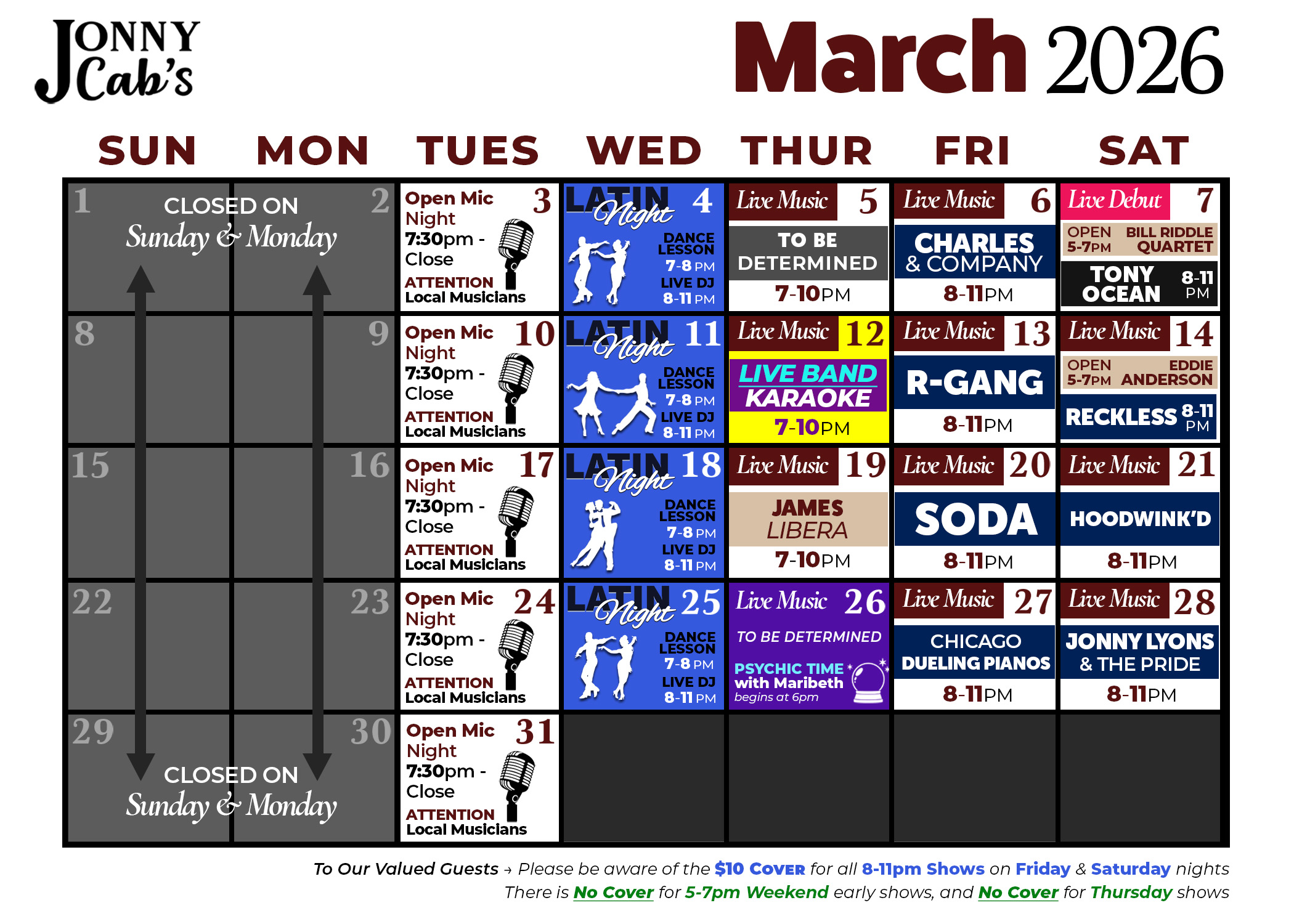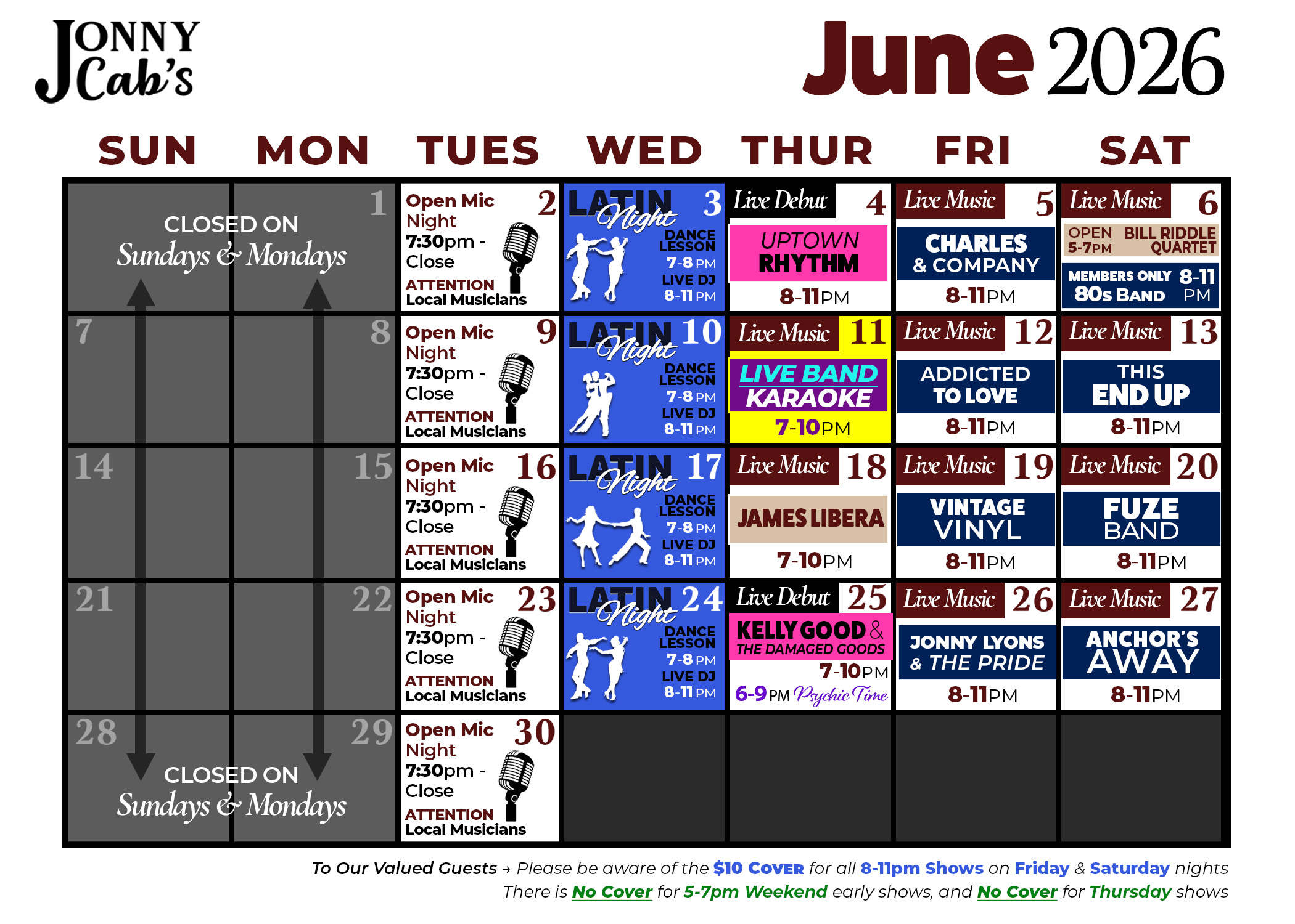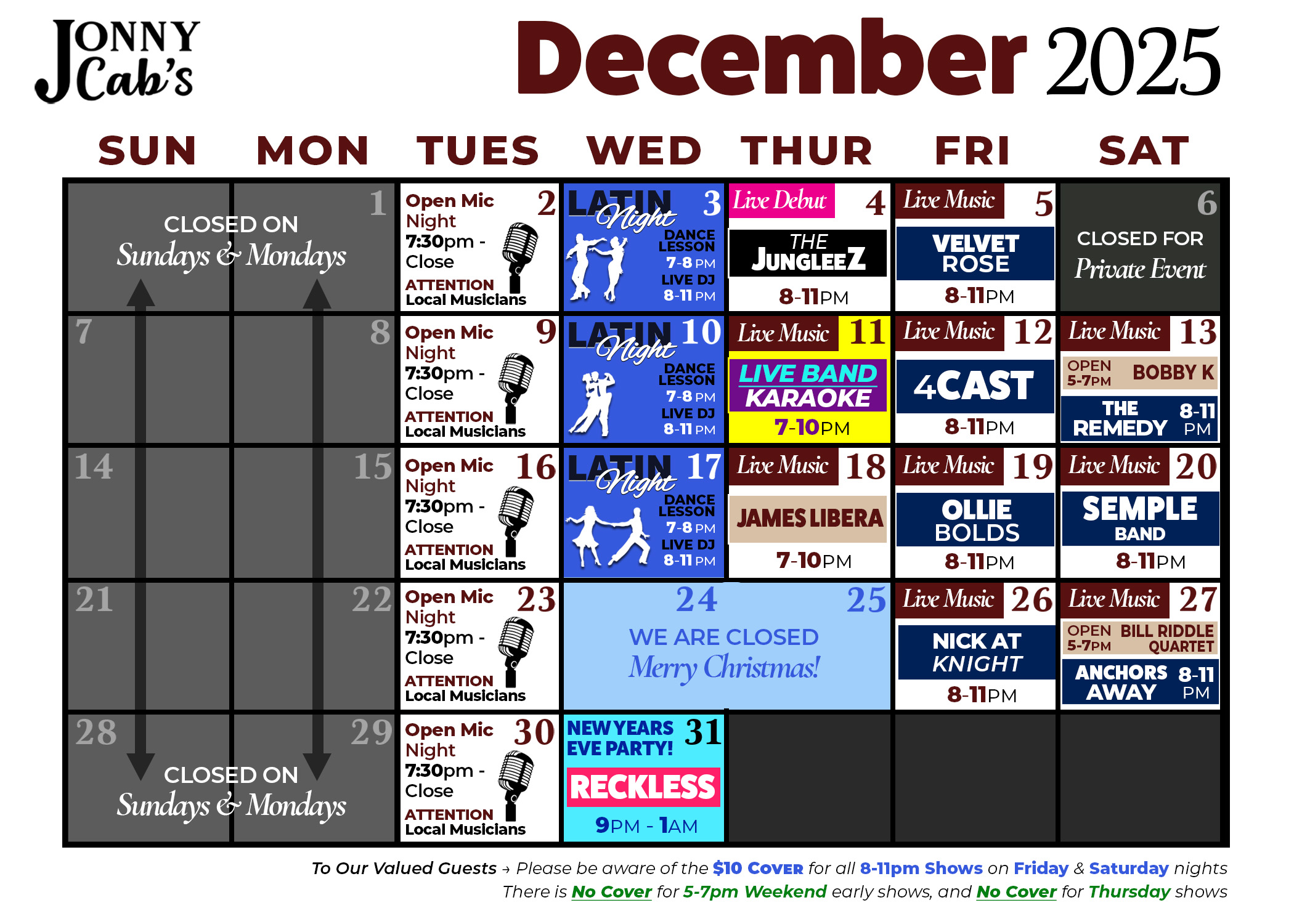 Jonny Cab's Event Schedule